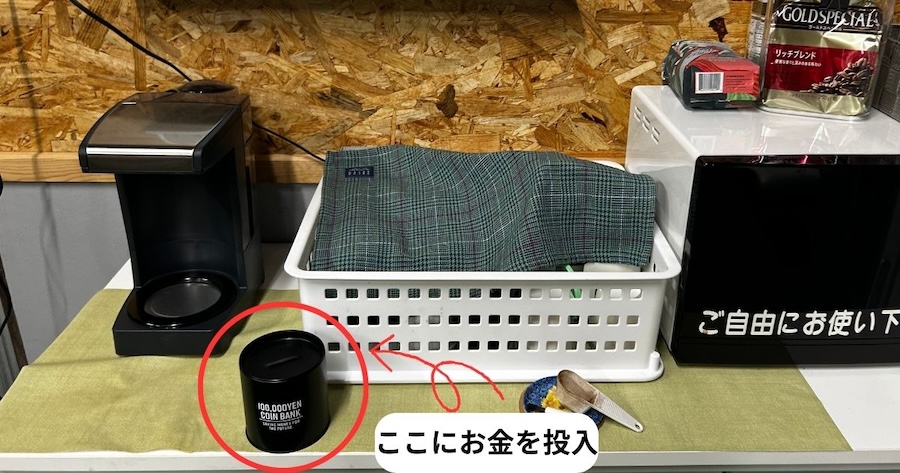驚くべきはその支払い方法。なんと、欲しいものを自分で取り出し、そばに置かれた“賽銭箱”のような箱にお金を入れる完全セルフサービスなのです。このアナログで信頼関係に基づいたシステムこそ、この場所の“アットホーム感”の源泉でしょう。