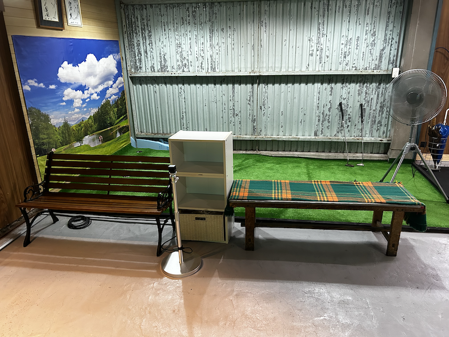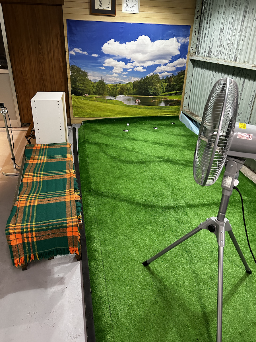 また、パター練習用のグリーンも設置されていますが、扇風機が置かれていることもあり、こちらは“おまけ程度”と考えた方がいいかもしれません。