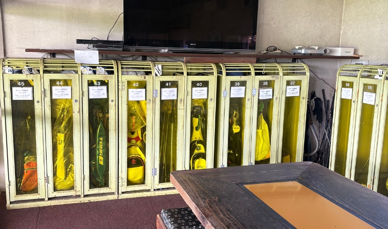1F・2Fにゴルフバッグ用の預かりロッカーがあり、年間3,000円〜で利用可能です。