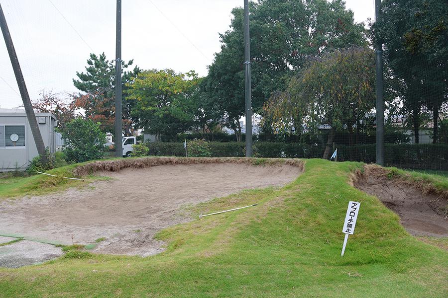 奥に高~いネットが張られたバンカーは、安心して砂遊びできる仕立てです。一方、右側の“あご高”バンカーは、アトラクション的に試してみる感じになりそうです。