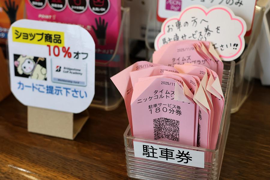 お帰りの際は、ピンクの駐車サービス券を受け取ることをお忘れなく。
