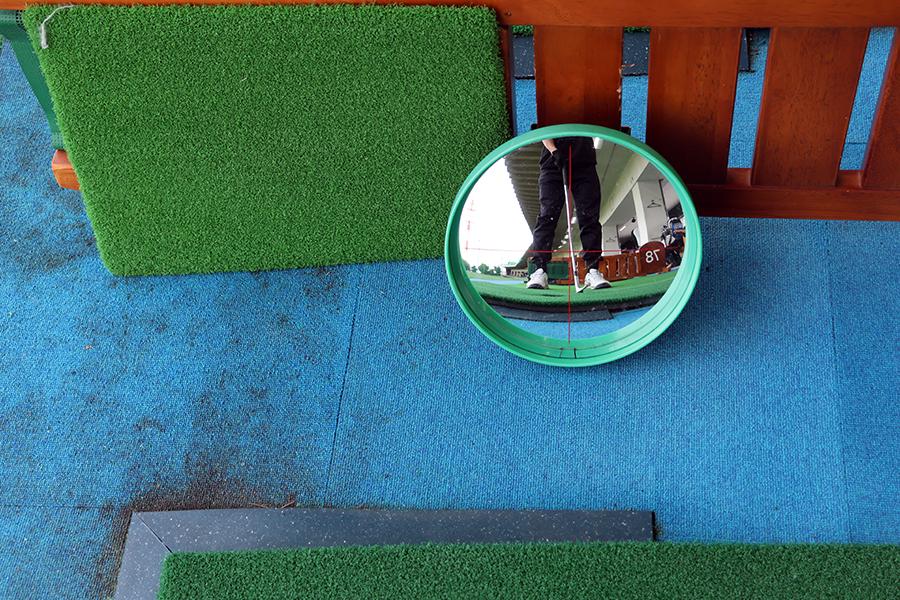 案内された打席には、他の打席では見かけなかった、小さな鏡が置かれていました。筆者的にはもちろん、嬉しい想定外です。