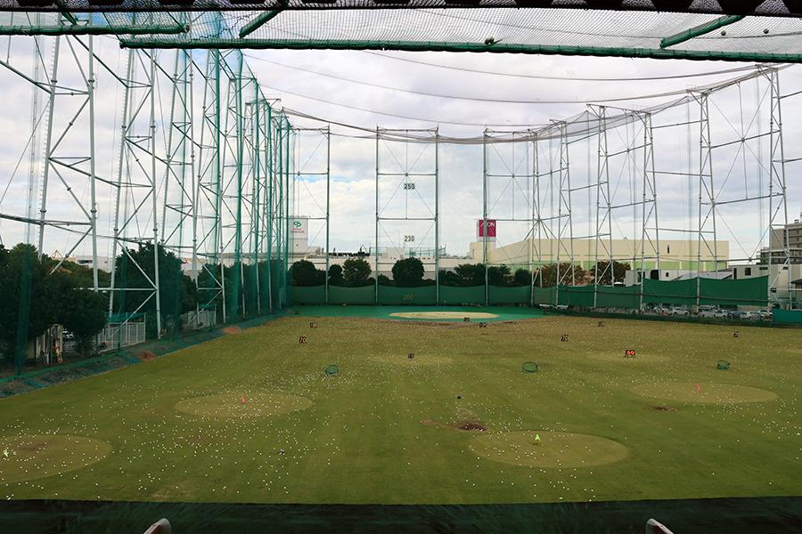 全長200yard・80打席のドライビングレンジを備える同練習場は、名物の“あご高”バンカーやパッティンググリーン、「ブリヂストンゴルフアカデミー」などを併設。