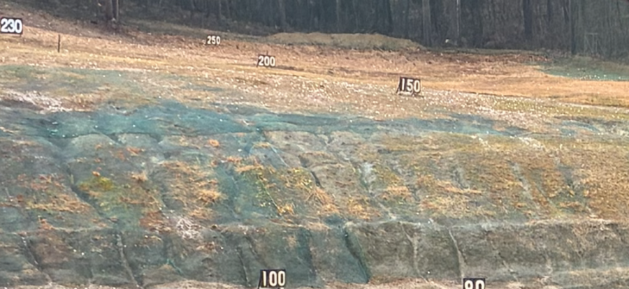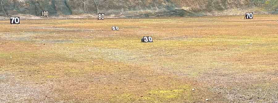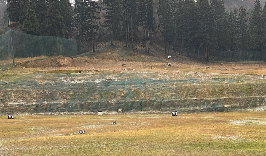 ・100ヤードを超える距離の練習ではボールは正面奥の傾斜面に打ち込むことになります。