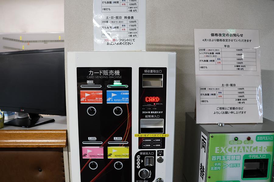 1球打ちで利用する場合は、プリペイドカードを購入し、入場料400円+6円/球で処理されていきます。