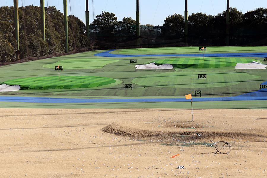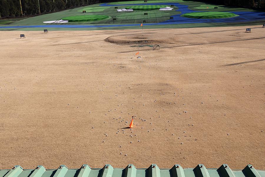 バンカー打席はなかなか実践的。ただし、前方のアゴ付近からのショットは、危険防止のためNGです。