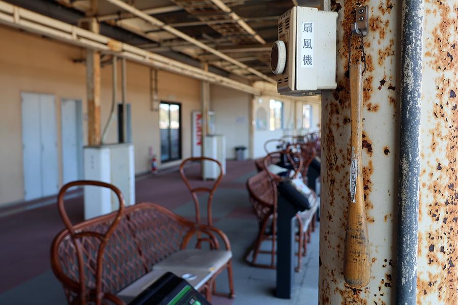 打席間の柱には、「ヒーター」や「扇風機」のスイッチに加え、カメレオンのように柱と同化した「靴ベラ」も用意されています。