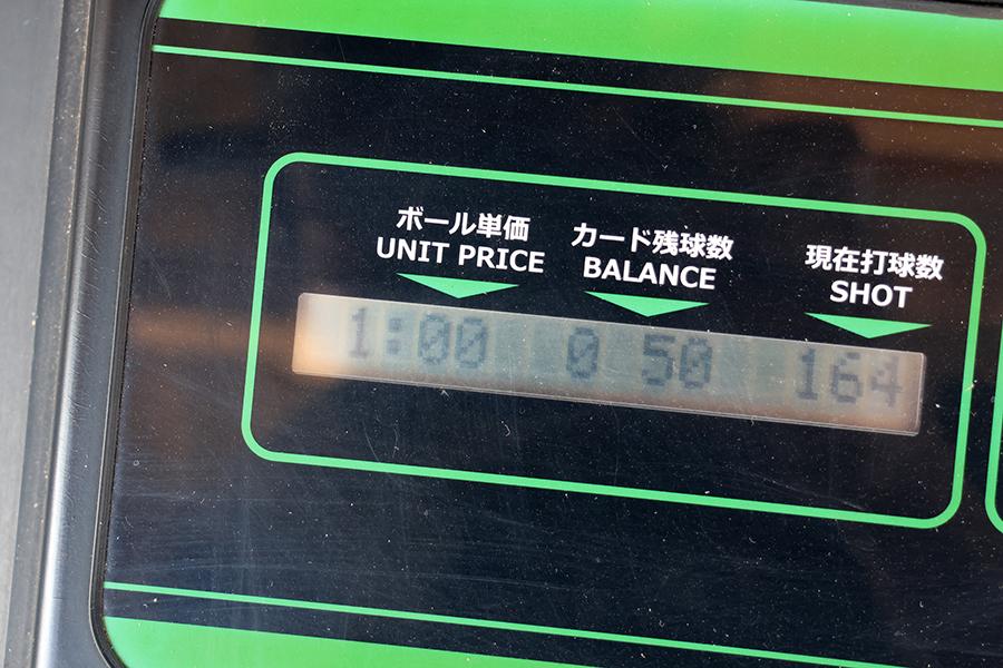 というわけで、あっという間に終了10分前に。液晶モニターの表示は、ボール単価=打ち放題の時間、カード残球数=経過時間です。
