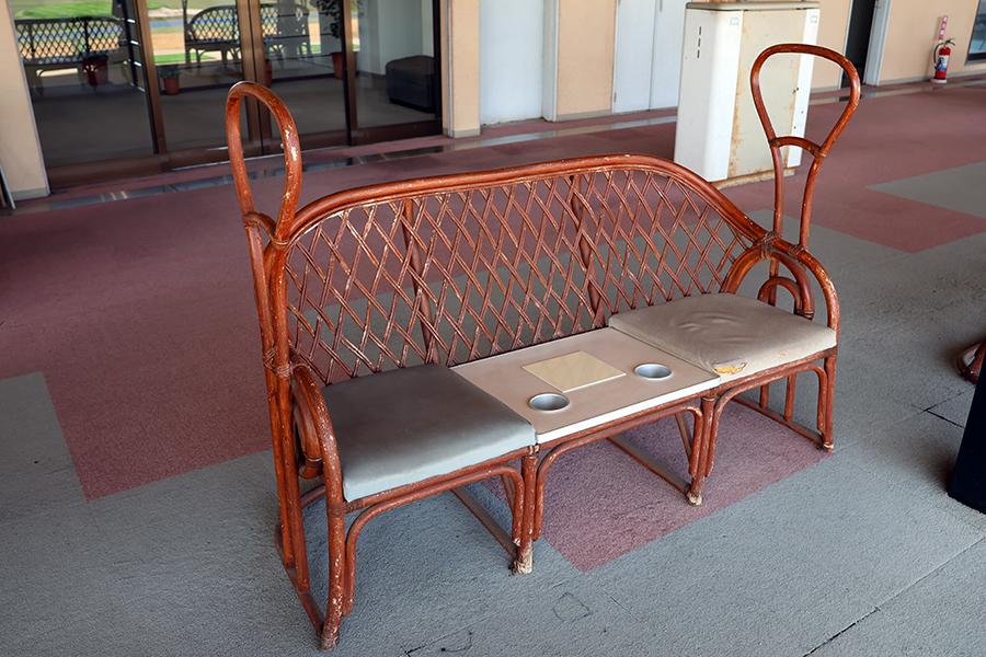 経年劣化が進んでいるベンチは味わい深く、思わず持ち上げてみたくなる取っ手が付いていました。