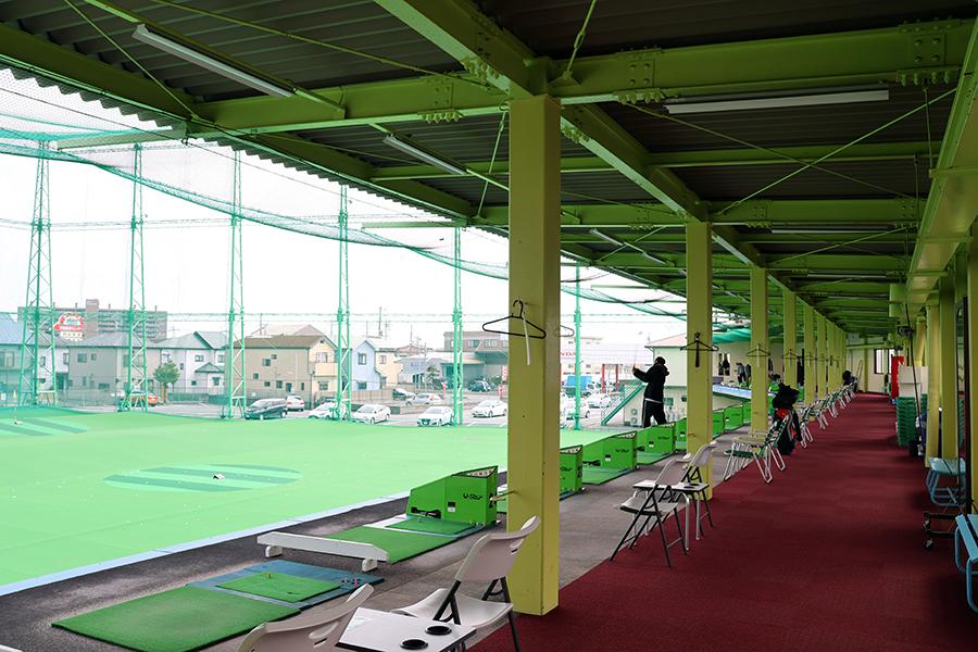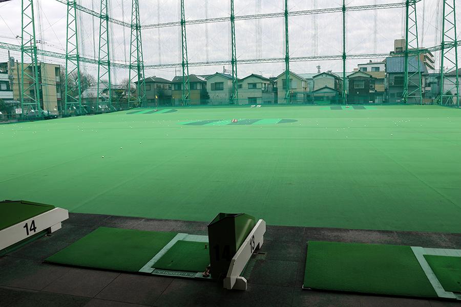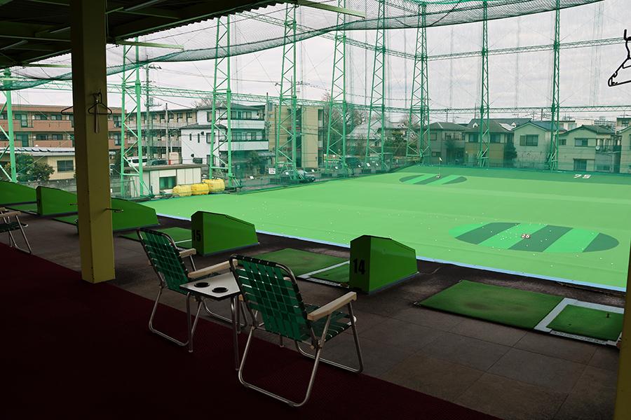 全長75yard・52打席、住宅街に向かって“打ちっぱなし”ていく同練習場は、いつでも入場料無料で500円(1F・45球/2F・50球)から利用可能。