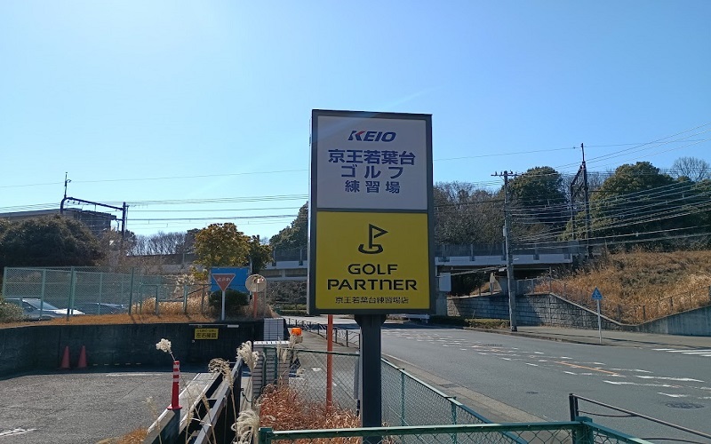 練習場の入口には大きな看板があります。かなり広い敷地で、さすが京王電鉄!という感じがする高級感のある練習場です。