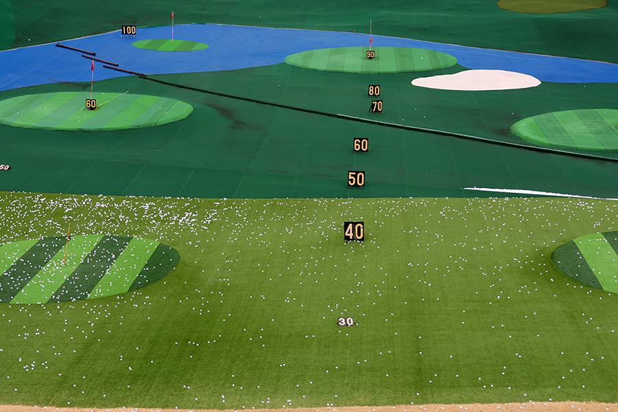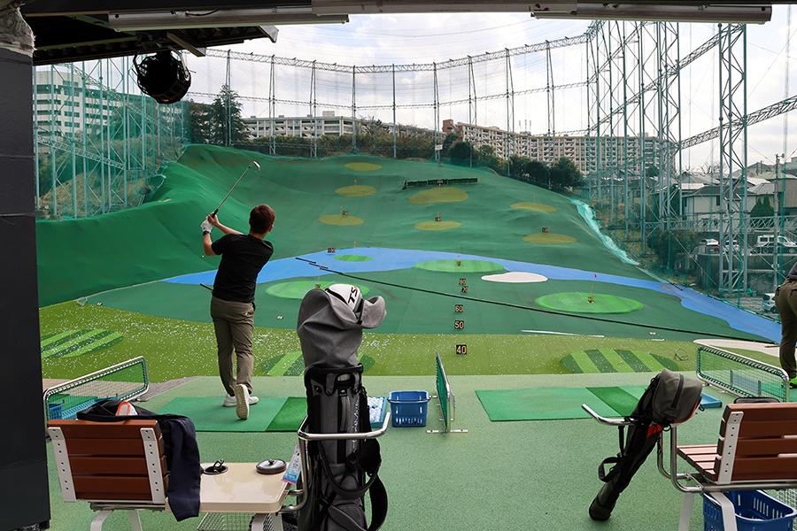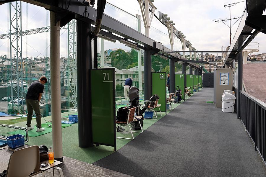 全長230yard・87打席を備える同練習場は、100円/500円/1,000円単位で購入できる「球数制」を採用。施設内には、無料で利用できるパッティンググリーン×2面に加え、開放的な「屋外打席(3Fの一部)」を用意しています。