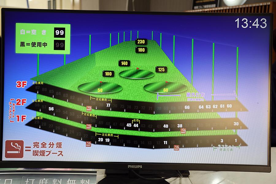 打席はフロントのモニターから選ぶシステムです。
