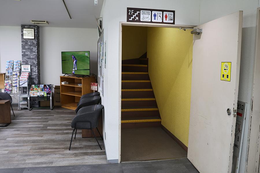 2F打席はラウンジ脇の階段から、