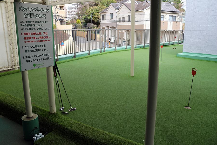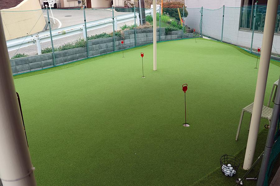無料で使えるパッティンググリーンは、1Fの入口付近(100平米)と