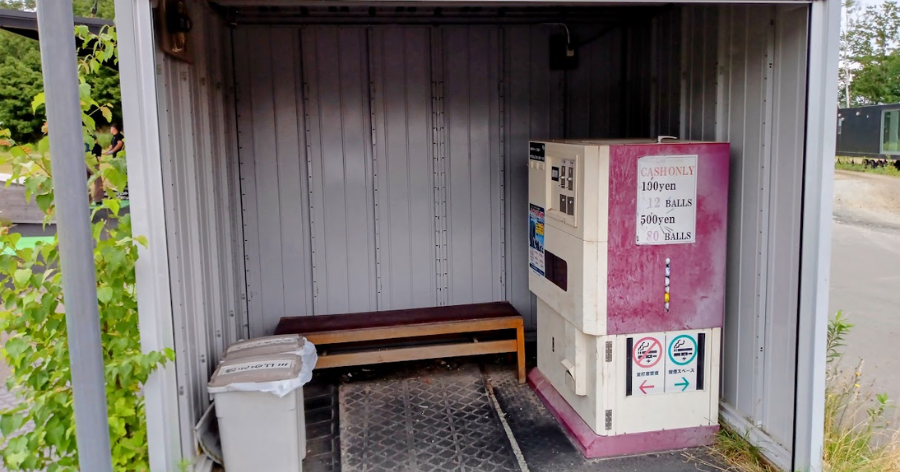 ボール配給口のそばに喫煙所が設けられています。
