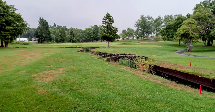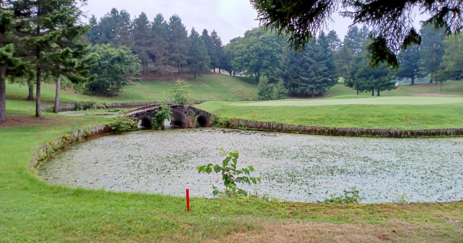 新コースはなだらかな丘陵地帯に造られ、バンカーや池が巧みに配置されています。