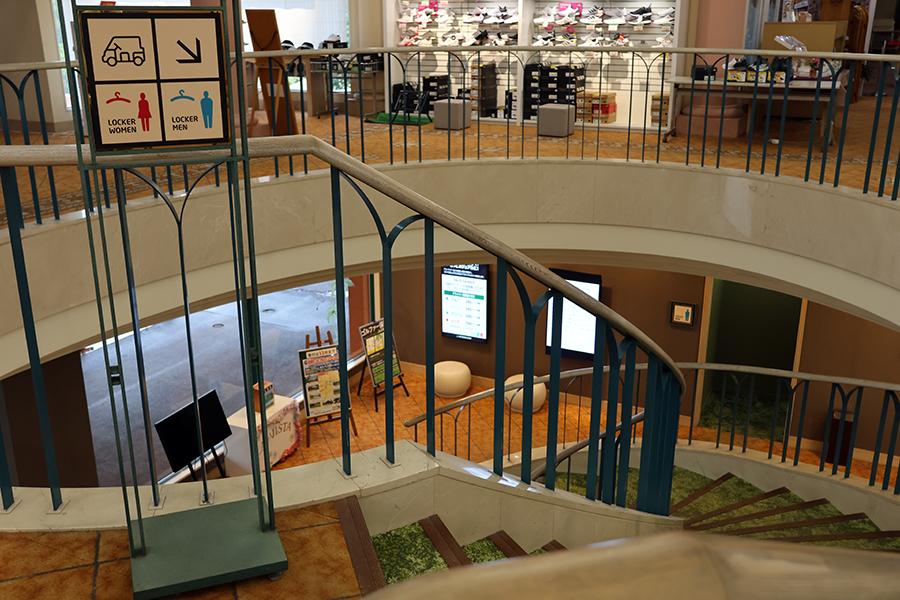 ロッカールームは、螺旋階段を下りた先の右手にあります。