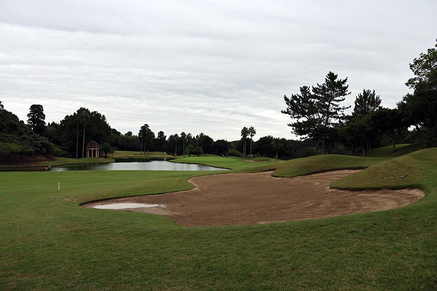 左ドッグレッグとなる4番ミドル(同347yard)は、正面のバンカーまで200yardほどで、左サイドへのひっかけに要注意!