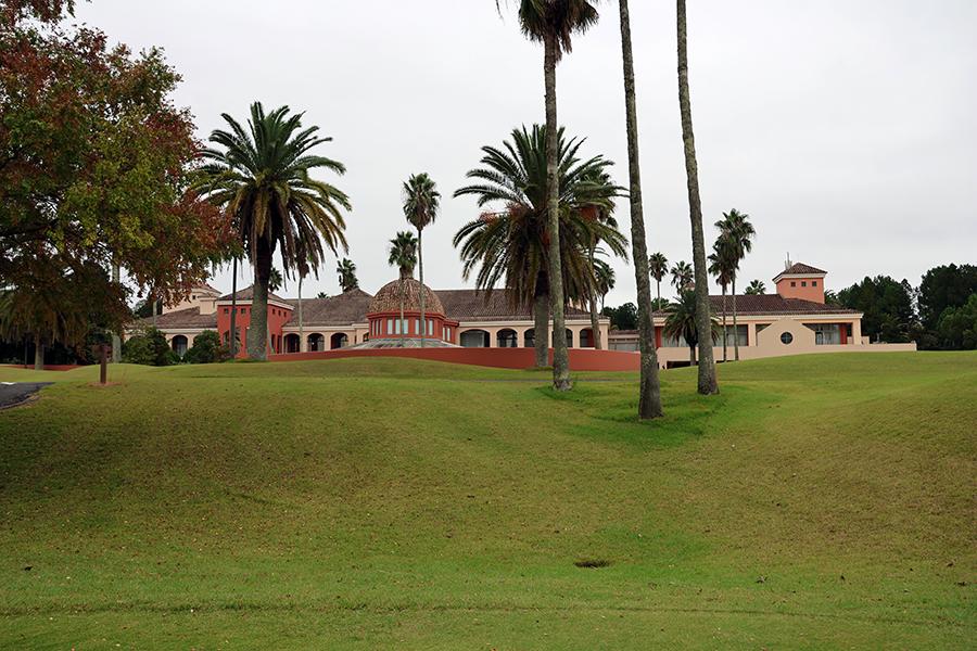 17番ミドル(同353yard)のティーグラウンドの真後ろでは、南欧風のクラブハウスがゴルファーを見守ってくれています。