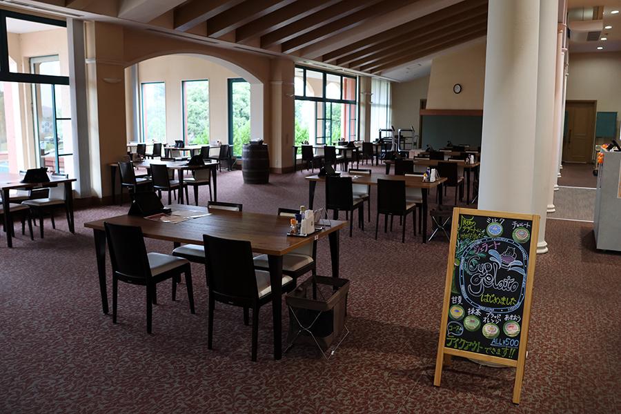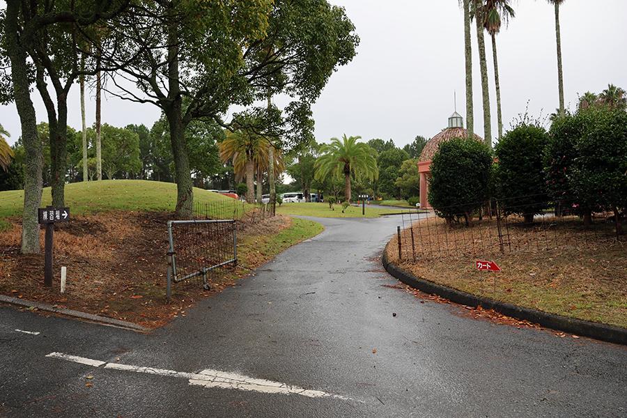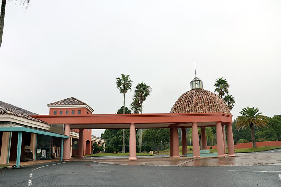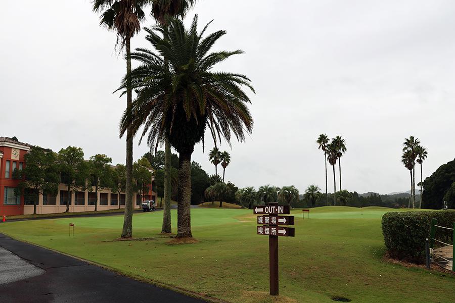 意外と勾配のあるアプローチを駆け上ると、南欧風のクラブハウスが見えてきます。この日はあいにくの空模様でしたが、晴れている日には、リゾート感が“マシマシ”でしょう。