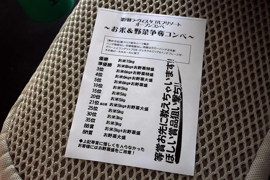 この日のプレーフィは、「お米&野菜争奪コンペ」のエントリーフィを含め、平日ランチ付きで8,491円+ゴルフ場利用税650円に、450円のロッカーフィをその場で追加した9,591円でした。