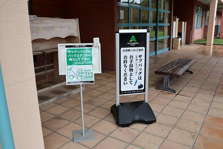 キャディバックの積み下ろしはセルフで行い、ラウンド後には、バッグスタンドの解錠キーが手渡されます。