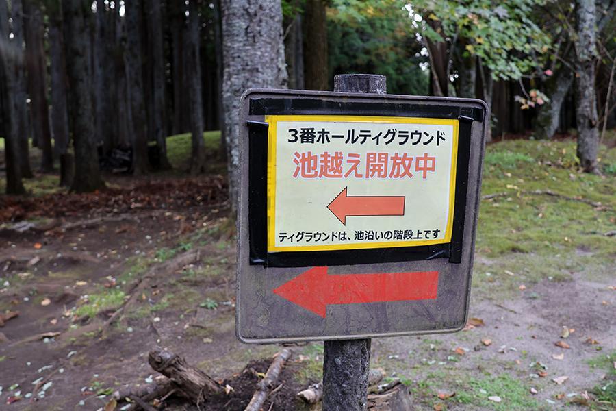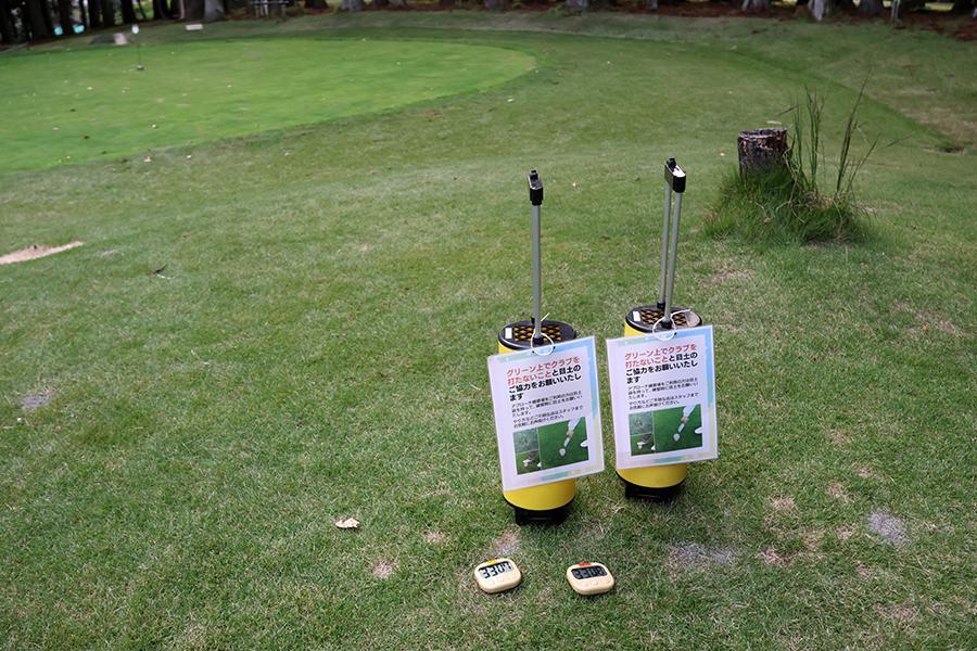 コース内には、「50Y」や「30Y」のヤーデージ表示があるので、とくに距離計が無くても問題ないでしょう。