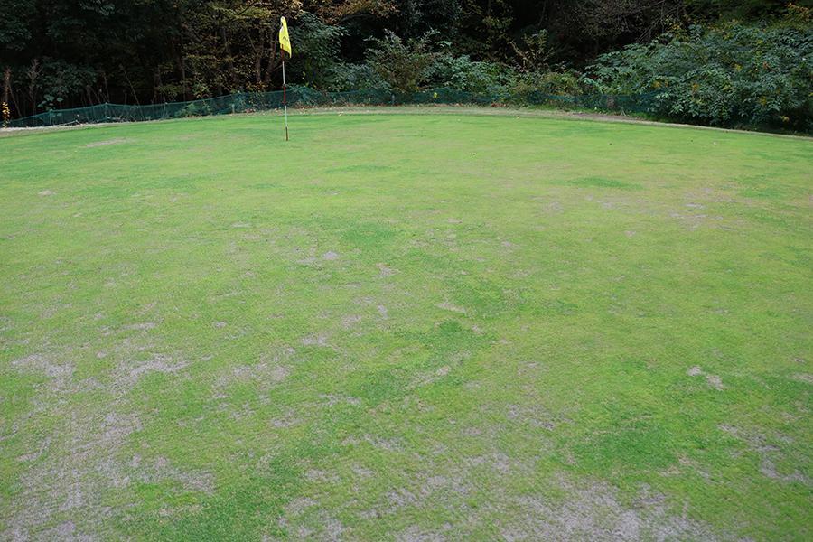 一方、林に囲まれて日光が足りなかったのか、グリーンの状態は芳しくありません。