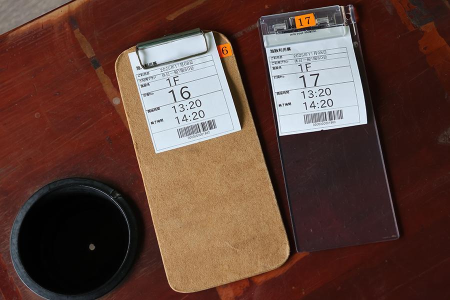 レセプションで打席を指定すると、終了時間が刻印されたシートを手渡されます。