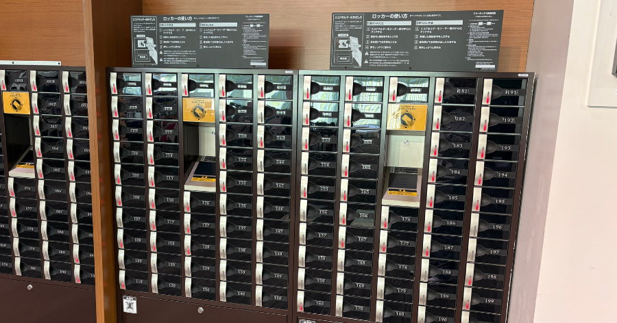 受付が終わったら貴重品はロッカーへ預けましょう。貴重品ロッカーは多くの方が利用できるよう設置されています。