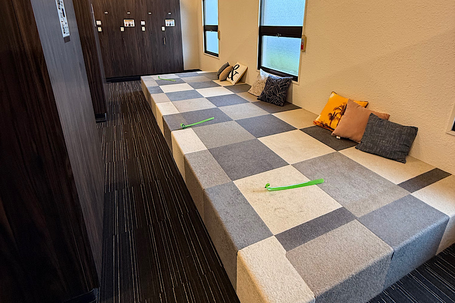 ロッカーは椅子はないのですが少し奥に小上がりスペースがありました。