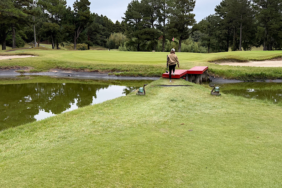 さらに、強制的に刻まないといけないホールも何箇所かあり、パー5では谷の前に2打目を刻んで3打目で170ydの谷越えをしないといけなかったり、パー4で池の手前に190yd打ってあとは50ydのアプローチだったりと、マネジメントをきちんとしなければいけません。