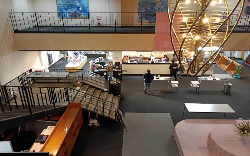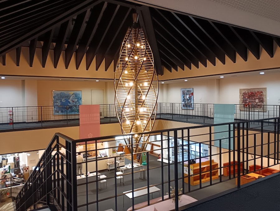 2階にも絵画が飾られていて、特徴的な照明も芸術性があり目を引きますよね。