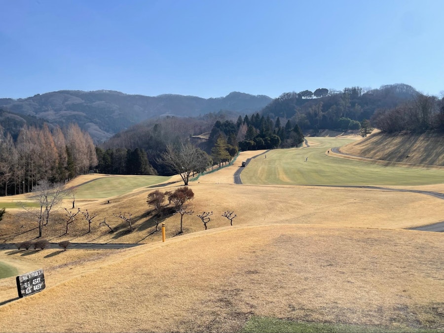クラブハウスで受付を済ませ、外に出た瞬間、まず目に飛び込んでくるのは秩父連山の雄大な稜線だ。